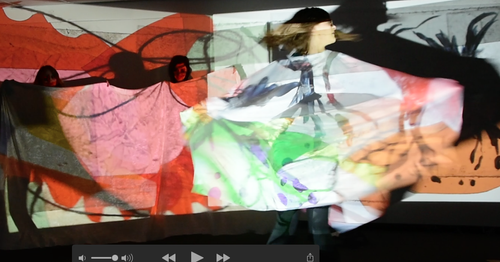 Participants make hand made slides, which are projected into a dark space, with white walls. They wear white garments, and "catch" works of abstract art- created either by themselves, or fellow collaborators, on sheets of white paper.